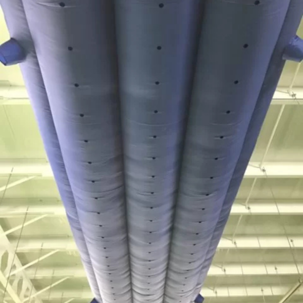 El ducto textil elíptico-solución-óptima para instalaciones con restricciones de espacios. Ofrece una alternativa eficiente a los conductos rectangulares tradicionales, manteniendo las propiedades de baja fricción y asegurando una distribución uniforme del aire.